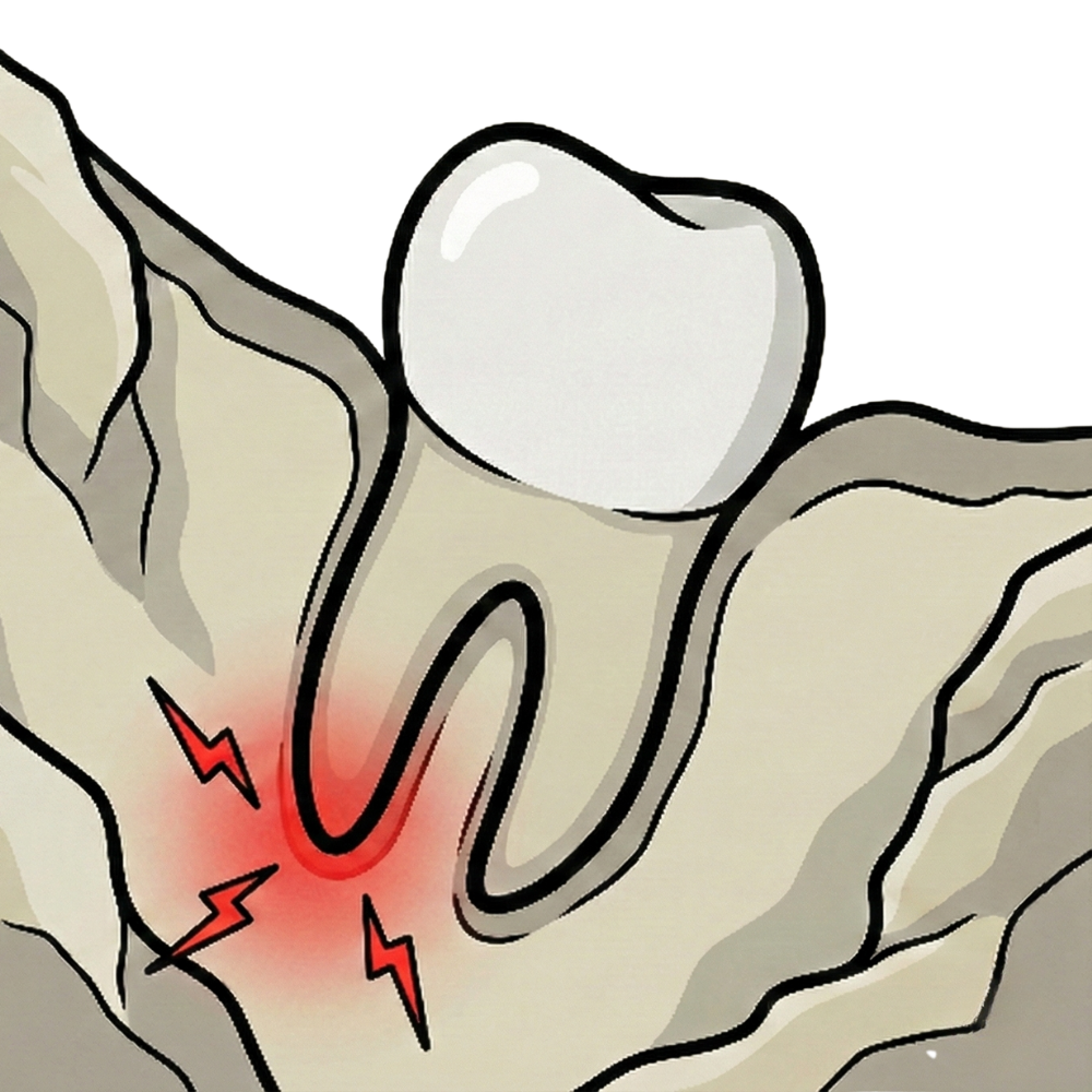硬い骨に埋まっている歯を無理に動かすと、炎症反応が強く出ます。