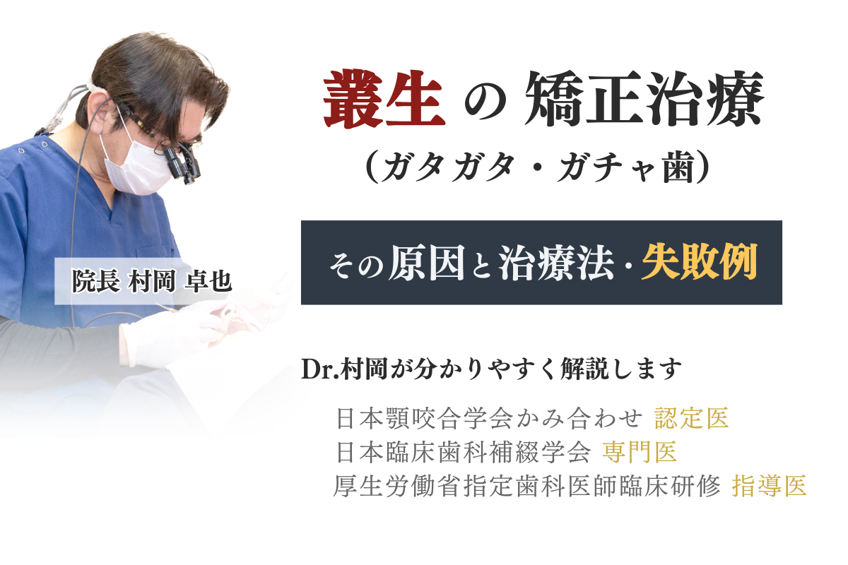 叢生(そうせい)は、ガタガタとかガチャ歯、乱杭歯(らんくいば)ともいわれる、歯と歯が重なってデコボコした症状。