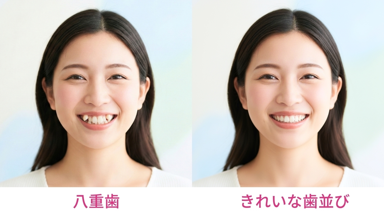 八重歯がのぞく口元と、きれいな歯並びの口元。同じ顔なのにずいぶんと印象が違うと思いませんか?