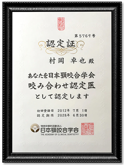 院長と矯正担当医は、日本顎咬合学会認定「咬み合わせ認定医」でもあります。