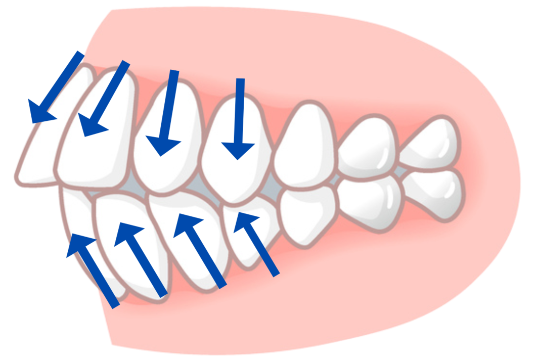 一般的に前歯だけを動かす矯正治療では、歯をきれいに並べるスペースが足りないので、前歯を外側に広げて治療を行います。