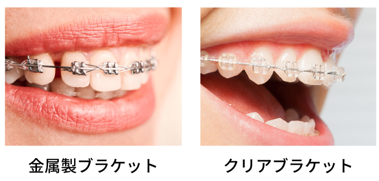 同じワイヤー矯正でも、写真左側の金属製ブラケットと右側のクリアブラケットでは、見た目にずいぶんと差が出ます。
